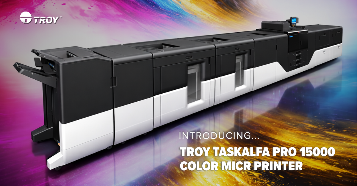 ويلينغ، وست فرجينيا – أعلنت اليوم مجموعة TROY، الرائدة عالمياً في مجال حلول الطباعة الآمنة حسب الطلب منذ أكثر من 60 عاماً، عن إطلاق طابعة TROY TASKalfa Pro 15000 Color MICR، وهي طابعة إنتاجية عالية السرعة تعمل بتقنية نفث الحبر وتغذي بالورق على شكل أوراق، وقد صُممت خصيصاً لطباعة الشيكات المزودة برموز MICR بكميات كبيرة.